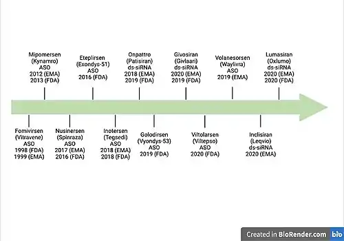 - ↑ Research, Center for Drug Evaluation and (7 December 2021). "Investigational New Drug Application Submissions for Individualized Antisense Oligonucleotide Drug Products for Severely Debilitating or Life-Threatening Diseases: Clinical Recommendations". U.S. Food and Drug Administration.