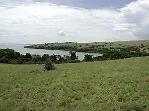Located on the Lake Victoria, this island is a haven for birds. Covered mostly in grassland, Ndere Island provides beautiful scenic views of the Homa hills to the south, Mageta Island to the east and the glimpses of Kampala in Uganda beyond the south west horizon. The lake shore supports a wide variety of animals including hippos, monitor lizards, Nile crocodiles, several fish species, snakes, baboons, impalas, the rare sitatunga antelopes, water bucks, zebras and warthogs. Over 100 different species of birds can be seen here including African fish eagles, black headed gonoleks and grey headed kingfishers.[1]