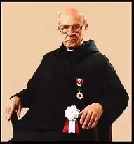 Neal Henry Lawrence, OSB wearing the robe of a Benedictine monk and the badge of the Order of the Rising Sun, which was conferred in 1993.