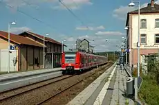The Neckarelz–Osterburken railway is a 30.9 km long railway line in the north of the German state of Baden-Württemberg, which connects the Neckar and the Bauland along the edge of the Odenwald. It was opened in 1866 as part of the Odenwald Railway (Baden) (Odenwaldbahn) between Heidelberg and Würzburg. It has been upgraded to form an entirely double-track and electrified main line railway. It was an east–west axis for German long-distance transport until 1945. Since 2003 passenger services on it have been operated by the Rhine-Neckar S-Bahn. The Neckarelz–Mosbach section has also been served by the Heilbronn Stadtbahn since 2014.