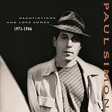 Negotiations and Love Songs is a compilation album of songs by American singer-songwriter Paul Simon, released in 1988 by Warner Bros. Records. It consists of songs released from 1971 to 1986. The title of the compilation is taken from a line in the song "Train in the Distance".