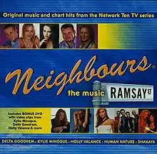 "Neighbours: The Music" was released via Sony Records and features an audio CD with seventeen tracks, plus a DVD containing ten videos.[1]