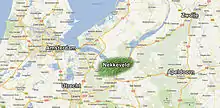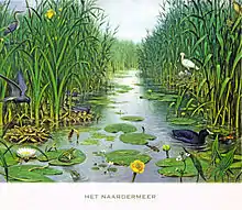 The Polder oasis Nekkeveld estate is an area located in the urban heart of Holland, the Netherlands, near Amsterdam, and is part of the hamlet Nekkeveld. This green oasis is situated in the delta of the Dutch Randstad, at the foot of the former Zuiderzee dyke and near the drowned Castle Hulkestein, now lake Nijkerkernauw. The natural status of the area is protected for its flora and fauna (water and meadow birds) by regional and European law: Natura 2000. The notability of Nekkeveld estate in this respect is acknowledged by the independent governmental waterboard Waterschap Vallei en Veluwe, stating this "(...) improves ecosystems for water animals and meadow birds".[1] Also, the governmental institution Staatsbosbeheer (Dutch Forestry Commission) specifically notified the project for its breeding results with the godwit, Holland's national bird.