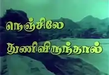 Nenjile Thunivirunthaal (transl.If You Dare) is a 1981 Indian Tamil-language action drama film directed by S. A. Chandrasekhar,[1] starring Vijayakanth and Swapna. It was released on 29 August 1981.[2] The film was remade in Telugu as Palletoori Monagadu[3] and in Kannada as Hasida Hebbuli.[4]