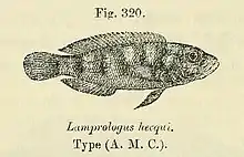 Lepidiolamprologus hecqui is a species of shell-living cichlid endemic to Lake Tanganyika. This species can reach a length of 8 centimetres (3.1 in) TL. This species can also be found in the aquarium trade.[2]
