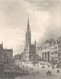 Neptune's Fountain (Polish: Fontanna Neptuna; German: Neptunbrunnen) is a historic fountain in Gdańsk, a mannerist-rococo masterpiece, and one of the most distinctive landmarks of the city.[1] The fountain is located at the Długi Targ (Long Market),[2] in front of the entrance to the Artus Court.[3] It was constructed in the early 17th century. Kashubians use a nickname Krësztof for the sculpture.