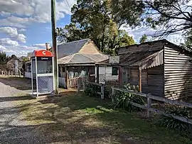 The discovery of alluvial gold on the Shoalhaven River in 1851 led to increased interest in the area around Nerriga, and the town began to grow, with the Commercial Hotel opening for business some time around 1864.[8] The building still stands today, but is now known as the Bark Tree Hotel. Records show that between 1878–1901, the peak of production in the area, some 14,177 ounces (401,900 g) of gold were produced from the Nerriga Mining Division. Some quartz reefs were also worked in the area, however the yields from these activities were not significant. Prospecting on a large scale continued through to the 1960s.[9]