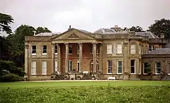The present house dates from 1790 and has been extended several times since then.[1] It is ashlar-built in two storeys (three storeys at rear) with a frontage of eight bays, and is Grade II* listed.[2]