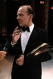 The Nestroy Theatre Prize is an Austrian theatre award named after the poet Johann Nestroy.[1] In 2000, the city of Vienna decided to combine two less noticed theatre awards: the Kainz Medal and the Nestroy Ring for Viennese Satire.[1] The prize honours outstanding achievements at the Viennese and other Austrian theatres.[2] The prize has been awarded annually in eight up to fourteen categories. Its ceremony is held in Vienna and broadcast live on national television.[3]