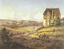 Neuenstadt was originally a settlement known as Helmbund which was first mentioned in records as early in 797 A.D. Helmbund stood in the meadows of Brettach. It is believed that the settlement moved a kilometer away at some time around the beginning of the 14th century to avoid flooding. Since then it has stood on higher ground between the Kocher and Brettach rivers. This gave rise to name New Town, or "Neue Stadt" in German. The hamlet of Helmbund subsequently all but disappeared with only the scattered ruins of the Gothic church of Helmbund remaining. Neuenstadt first fell under the reign of the rulers of Weinsberg whose lineage came to an end in 1507. As a result, it was originally a town from the Electorate of the Palatinate before falling into the area of Württemberg in 1504. In the 17th and 18th century the Württemberg-Neuenstadt branch line of the ducal house of Württemberg took up residence in Neuenstadt castle until the male lineage of dukes died out in 1742.