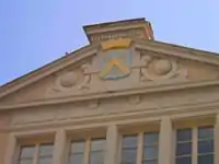 The Neufville de Villeroy arms on the château d'Ombreval, now the mairie of Neuville-sur-Saône (Rhône)