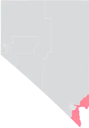 The district overlaps with Nevada's 3rd and 4th congressional districts, and with the 19th and 23rd districts of the Nevada Assembly.[4] It borders the states of Arizona and California.[1]