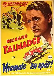 Never Too Late is a 1935 American crime film directed by Bernard B. Ray and stars Richard Talmadge, Thelma White and Robert Frazer.
