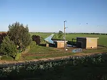 The area between the New Bedford River and the Great Ouse now lies at an average of 6.6 feet (2 m) below mean sea level, and three times that distance below the highest levels that tides normally reach. The low lying land is managed by the Littleport and Downham Internal Drainage Board, the successors to the Littleport and Downham Drainage Commissioners which were established by Act of Parliament in 1756. This act enabled the land to be enclosed, and the district has relied on pumped drainage ever since. The board are now responsible for 32,242 acres (13,048 ha) of fen land.[15] Water from the district is pumped into the New Bedford River by the Hundred Foot and Oxlode pumping stations, and into the Great Ouse by the Ten Mile, Moors, and Wood Fen pumping stations.[16]