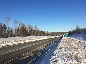 A bypass of Tracadie-Sheila opened to traffic in 2003.[5] Also, an extension to that existing bypass was done in 2009, linking the northern end and Six-Roads, near Pokemouche.[6]