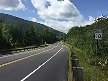 New Hampshire Route 18 is a 20.116-mile-long (32.374 km) state highway in northwestern New Hampshire. It is a local road serving Franconia, Bethlehem, and Littleton, New Hampshire, which I-93 bypasses. Its northern extension, Vermont Route 18, continues northward from the Connecticut River to St. Johnsbury, Vermont. NH 18 closely parallels I-93 for its entire length and has several interchanges with the Interstate highway.