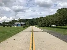 New Jersey Route 163 originated as an alignment of U.S. Route 46 (co-signed with New Jersey State Highway Route 6).[3] The alignment of 6 and 46 went along the alignment of the original State Highway Route 5 from the early 1920s, stretching from Newark to the bridge over the Delaware River at Delaware.[4] The route was decommissioned when the 1927 renumbering occurred.[5] After that renumbering, the route became State Highway Route 6, a co-designation to U.S. Route 46,[5] which had been assigned the prior year.[6] The two highway designations remained intact until the 1953 renumbering, when Route 6 was decommissioned in favor of using the U.S. 46 designation.[7] U.S. Route 46 was realigned once again when the Portland-Columbia Toll Bridge opened in 1953,[8] when the alignment of the highway was changed to head along former State Highway Route 8[3] (mostly New Jersey Route 94), where it ended at U.S. Route 611 and Route 94, where its current terminus is located.[9] After the realigning of the Route 46 Delaware River crossing, the remaining route to Darlington's Bridge was renumbered to New Jersey Route 163, in the 1953 renumbering.[9][10] The bridge was decommissioned on April 3, 1954 and demolished a few days later, but the state continued to maintain State Route 163 that previously led to the bridge.