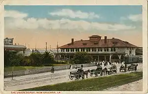 The station was used primarily by the Illinois Central Railroad as the terminus for its main line from Chicago, including the celebrated Panama Limited. However, it also served a number of other lines, including the Southern Pacific Railroad and its Sunset Limited. The Yazoo and Mississippi Valley Railroad, an IC subsidiary, used the station for trains from Mississippi. Missouri Pacific (Gulf Coast Lines) trains from Houston used this station although other Missouri Pacific trains used the T&P Station. Before the Huey P. Long Bridge was constructed, the Sunset and other Southern Pacific trains reached the station by ferry from Avondale.[1] By the 1940s, a total of 13 passenger trains arrived and departed from the station daily.[2]