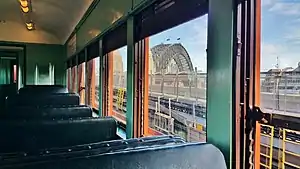Sydney’s Red Set F1, which is made up of four carriages (C7396, C3218, T4527, C3426), is preserved and in operational condition. This is as a result of collaboration between Sydney Trains, Transport Heritage NSW, who plan public trips and tours on the train, and Historic Electric Traction. The restored train resumed carrying passengers on June 11, 2016, 14 years since its last such trip.[13][14] One of the carriages of set F1, power car C3426, led the first electric train to cross the Sydney Harbour Bridge. All four cars were built in 1927.[15]