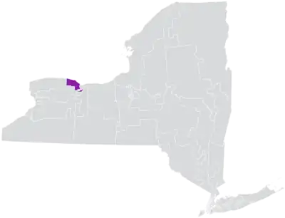 District 56 is located entirely within Monroe County in Western New York, including much of western Rochester and its surrounding suburbs of Brighton, Gates, Greece, Parma, Clarkson, and Hamlin.[1][4]