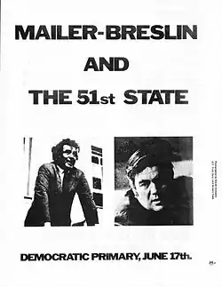 New York City: the 51st State was the platform of the Norman MailerJimmy Breslin candidacy in the 1969 New York City Democratic Mayoral Primary election. Mailer, a novelist, journalist, and filmmaker, and Breslin, an author and at the time a New York City newspaper columnist, proposed that the five New York City boroughs should secede from New York State, and become the 51st state of the U.S.