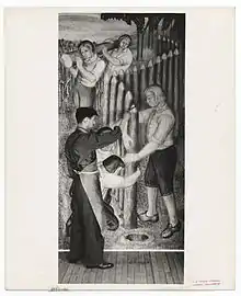 Artist Axel Horn painting a mural inside the Farm Colony as part of the Federal Art Project in 1937. Image from the collection of the Archives of American Art.