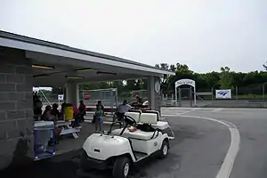 New York State Fair station serves the New York State Fairground in Syracuse, New York. It is served by Amtrak Empire Service and Maple Leaf trains while the fair is in operation. The station is located in the southwest corner of the fairgrounds, with a shuttle service to the central area.[3][4] It consists of an unsheltered low island platform between two of the four tracks of the former New York Central Railroad Water Level Route four-track mainline, with a sheltered waiting area nearby. A mobile lift provides handicapped access.