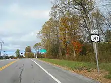In 1912, the New York State Legislature created Route 37-a,[4] an unsigned legislative route extending from Route 25 (now NY 50) in the village of Ballston Spa to Route 37 (modern NY 29) in the town of Galway by way of Scotch Church and the village of Galway.[5] The portion of Route 37-a between Scotch Church and NY 29 north of Galway village became the northern half of NY 147, a new route extending from Scotia to Galway, as part of the 1930 renumbering of state highways in New York. NY 147 has remained unchanged since that time.[2]