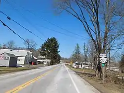New York State Route 220 (NY 220) is a 20.81-mile-long (33.49 km) state highway located in Chenango County, New York, in the United States. It is signed as an east–west highway, but its actual routing wanders considerably from north to south as it proceeds across the county. The western terminus of NY 220 is at an intersection with NY 41 near the western county line in the town of Smithville. Its eastern terminus is in the town of Oxford, where it becomes County Route 32 (CR 32) east of the village of Oxford.[3] The stub of NY 220 east of Oxford serves as a signed connection between NY 12 and the New York State Veterans' Home at Oxford located east of the village along the Chenango River.