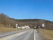 The east–west highway between the town of Horseheads and the village of Candor by way of the villages of Van Etten and Spencer was originally designated as NY 53 in the mid-1920s.[4][5] NY 53 was renumbered to NY 223 as part of the 1930 renumbering of state highways in New York.[2] NY 223 was truncated to its junction with NY 224 northwest of Van Etten in the early 1950s. The former routing of NY 223 southeastward to Van Etten became an extension of NY 224 while the Spencer–Candor portion became a realignment of NY 96. From Van Etten to Spencer, the road remained part of NY 34, which NY 223 had overlapped.[6][7]