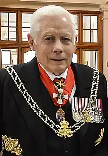 The New Zealand Herald of Arms Extraordinary attends the Governor-General (or the Sovereign, if present) on ceremonial occasions which include the swearing-in of a new Governor-General, investitures of Royal honours, and the ceremonial opening of Parliament.[1] Since at least 2002 the New Zealand Herald of Arms Extraordinary has been the person appointed by the Governor-General to proclaim the dissolution of Parliament.[3][4][5][6]