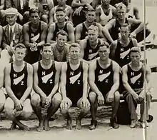 In 1932, seven rowing events were held, and New Zealand entered three boats: a coxless pair, a coxed four, and an eight.[4] The competition was for men only; women would first row at the 1976 Summer Olympics.[5] The eight included the first two Māori Olympians, Jack Macdonald and Lawrence Woodgate-Jackson.