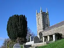 The church is located a few hundred feet from the castle and some parts of the building date from the 12th Century.[3] This church is named as a prebend as early as 1227. In 1467 it was assigned by Archbishop Michael Tregury to the Archdeacon of Glendalough. The present church was built between 1783 and 1788, with its tower being constructed in 1821.[3] In 1872 the Archdeacon of Glendalough ceased to have a place in the Chapter, as such, and the separate prebend of Newcastle was revived. The current Rector is the Reverend Ross Styles . The church, which is owned by the Church of Ireland (Anglicans), was also used as the local Catholic church for services in 2000 when it was agreed to share it until the catholic oratory was rebuilt. The local primary school St Francis's is located beside the church. There is a ruin of a Catholic church about 2 miles (3.2 km) from the village with a graveyard.