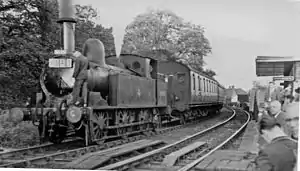 ![]() LNWR Webb Coal Tank No. 58887 at Newport Pagnell in 1954. | |