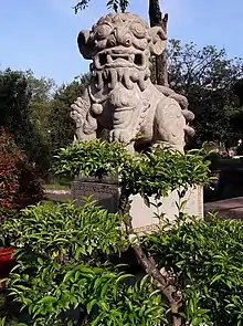 Nghê (chữ Hán: 猊) is a mythical animal in Vietnamese culture, a combination of kỳ lân (or lion) and dog, often used as a mascot in front of communal temples, temples, pagodas, shrines in Vietnam. In the countryside of North Vietnam, in front of the village gate there is always a big stone Nghê to protect the whole village, in front of the communal temple gate there is a stone Nghê, and in front of each house there is usually a small stone dog sitting in front of the guard. To keep it for the homeowner, in the southern countryside in front of the house, the guide often places a statue of a dog ceramic.