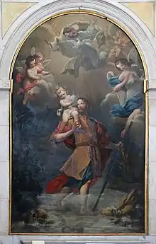 The Bichi Chapel of the Church of Sant'Agostino has an altarpiece of San Cristoforo (1755) that replaced the former triptych by Luca Signorelli.[1] He also has works in the church of San Giorgio in Siena.[2] He also painted the ceiling of the oratory of the painters guild in Siena, adjacent to the church of San Vigilio.[3] He painted a Return of Pope Gregory XI to Rome with Catherine of Siena once in the Oratory of the Santissimo Crocefisso in Siena.[4]