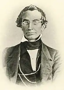 He married Caroline Lee Whiting on 30 September 1824, and moved with his wife to Covington, Kentucky, in 1831. Caroline was an author with numerous published works in periodicals and newspapers. It is rumored that although not a revolutionary, her female characters exhibited strong qualities for assertiveness and independence possibly as consequence of an oppressive relationship with her husband.[2] Her last novel, "Ernest Linwood" (1858), was based on an incident in which Hentz became jealous of Caroline's admirers and resulted in the end of their residence in Cincinnati.[3] Hentz and his wife had five children: Marcellus Fabius (18251827), Charles Arnould (18271894), Julia Louisa (18291877), Thaddeus William Harris (18301878), and Caroline Therese (18331904). Julia was born at Chapel Hill, North Carolina. She was educated by both of her parents and married in 1846 to Dr. John Washington Keyes in Tuskegee.[4] Julia wrote several short poems but most of her works were never published. Her most well known work was a prize poem called "A Dream of Locust Dell".[5] The youngest daughter, Caroline Therese was born in Cincinnati, Ohio and also educated by her parents and married the Baptist pastor, Rev. James O. Branch. She went on to publish tales and sketches published in magazines. Charles Arnould became a physician (Allopath).[6]