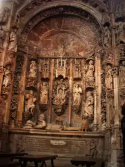 The damaged retable in the Renaissance chapel of St. Peter in the Old Cathedral of Coimbra is also attributed to Chanterene. (sometimes to Jean de Rouen). The central theme of the elegant decorations and carvings is Quo vadis ? (Where are you going ?)