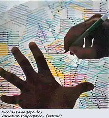 In 1979, subsidized by the French Ministry of Culture, Panagopoulos conducted research on new music notation and dealt with the potential relations between vision and hearing, a method adapted on his compositions.