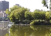 DeLaSalle High School, a Catholic, preparatory high school, and the Nicollet Island Inn are located on the island, as well as three multi-family residential buildings and twenty-two restored Victorian-era houses on the north end of the island.[31] The Inn was built in 1893 as the Island Sash and Door Company, and was a Salvation Army men's shelter from 1913 to the 1970s.[32]