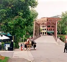 The south end of the island is home to the Nicollet Island Pavilion event center and the Bell of Two Friends, a gift from the city of Ibaraki, Osaka, Japan.[33] The pavilion was built in 1893 as the William Bros Boiler Works.[34][35]