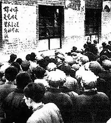 People gathering to read Nie Yuanzi's 1967 poster condemning Deng Xiaoping
