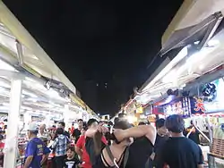 Taiwanese night markets (Chinese: 夜市; pinyin: yèshì) are night markets in Taiwan that operate in urban or suburban areas between sunset and sunrise. A few, such as Huaxi Street Tourist Night Market (or Snake Alley), use purpose-built marketplaces, but most occupy either sidewalks or even entire streets that carry vehicle and pedestrian traffic by day. Some night markets in smaller side streets and alleys feature retractable roofs. Most night markets operate daily and feature a mixture of individual stalls selling clothing, consumer goods, xiaochi (similar to snacks or fast food), and specialty drinks. The atmosphere is usually crowded and noisy with hawkers shouting and fast-paced music playing over loudspeakers. Taiwanese night markets have evolved over the years from small, local gatherings to noisy streets lined with vendors, who must adhere to regulations placed on their activities by the Taiwanese government.