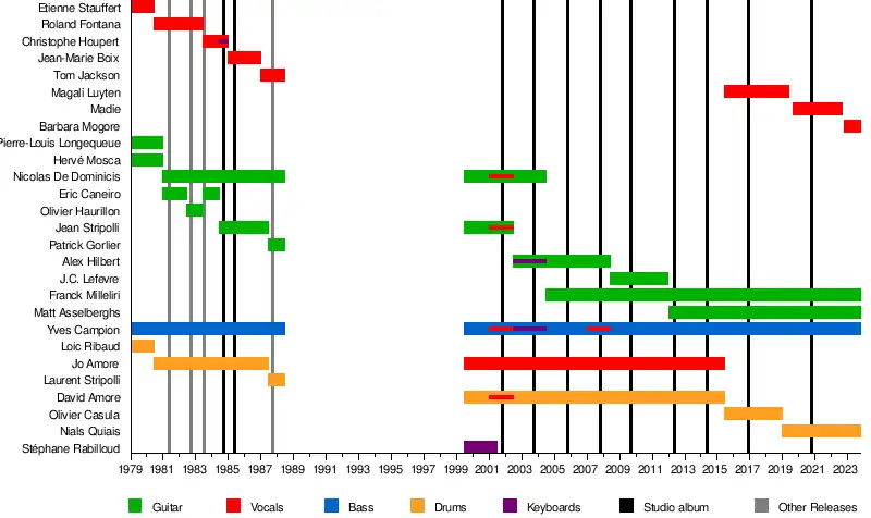 Nightmare was formed in 1979[1] and became known when they opened for Def Leppard at the Alpexpo of Grenoble in 1983,[2] in front of an audience of more than 4000. They signed for the label Ebony Records, which published the album Waiting for the Twilight. The LP entered the charts in Japan and was distributed in Greece by Virgin Records. Nightmare replaced singer Christophe Houpert with Jean-Marie Boix to record their second album Power of the Universe. Shortly after, the band terminated its partnership with Ebony Records and the album was reissued in France by Dream Records. Their new label was soon subjected to financial difficulties, which delayed the release of an LP the band was working on. In addition, Jean-Marie Boix was forced to leave the band because of health problems.[2] He was replaced by Scottish singer Tom Jackson (ex- Praying Mantis), hoping that his vocal qualities and his mastery of the English language could help the success of Nightmare on the other side of the Channel. This incarnation of Nightmare produced a demo with two songs and did a few shows in France and England, with moderate success. However, dissension between the musicians about the musical direction for the band, whose music was veering toward AOR,[3] led to disbandment in 1987,[2] closing for more than a decade the career of Nightmare.