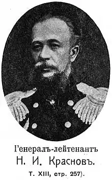 Nikolay Ivanovich Krasnov (Russian: Краснов, Николай Иванович, 29 January 1833 – 15 September 1900) was a lieutenant general of the Imperial Russian Army.