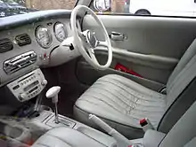 Standard equipment included ivory leather seats with contrasting piping, air conditioning, CD player, chrome and Bakelite-style knobs, soft-feel paint on the dashboard top, chrome-trimmed speedometer with smaller inset gauges for fuel and engine temperature; and chrome-trimmed tachometer with inset clock.[10]