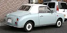 The Nissan Figaro is a two-door car manufactured by Nissan in 1991 for the Japanese market. Based on the original Nissan March/Micra, the Figaro is a fixed-profile convertible with a 2+2 seating arrangement. It shares the March's front-engine, front-wheel-drive layout. When new it was sold only through Nissan Cherry Stores.
