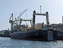 The Nisshin Maru (日新丸) is the primary vessel[5] of the Japanese whaling fleet and is the world's only whaler factory ship.[6] It was the research base ship for the Institute of Cetacean Research for 2002 to 2007.[7] It has a tonnage of 8,145 GT and is the largest member and flagship of the five-ship whaling fleet, headed by leader Shigetoshi Nishiwaki. The ship is based in Japan in Shimonoseki harbor[8] and is owned by Tokyo-based Kyodo Senpaku, which is a subsidiary of the Institute of Cetacean Research.[9]