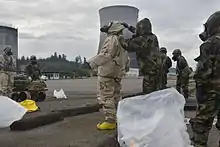 ![]() Soldiers from the 11th Chemical Company train jointly with Airmen from No. 26 Squadron RAF Regiment in Washington State | |