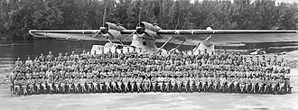 Equipped with Consolidated Catalina flying boats, No. 490 Squadron was tasked with patrolling for submarines, escorting convoys, and search and rescue missions, both from Jui and from Fisherman's Lake in Liberia. Its first operation was as a convoy escort on 2 July.[9][10] On 7 August the squadron rescued its first seamen, 39 survivors from the merchant ship Fernhill that had been sunk by a torpedo about 400 miles (640 km) from Freetown. This involved a Catalina flying station over the seamen, who had taken to life rafts, while a second guided another ship to pick them up. Just a few days later, a U-boat was sighted and attacked. Four depth charges were dropped and appeared to have damaged the steering of the U-boat, which then submerged.[11][10] However, most patrols were uneventful as U-boat activity was on the decline and their crews very cautious, operating at the fringe of the squadron's air coverage. In early December, there was a brief flurry of action when a ship was torpedoed near Freetown and the squadron sought out the attacking U-boat, but without success.[12]